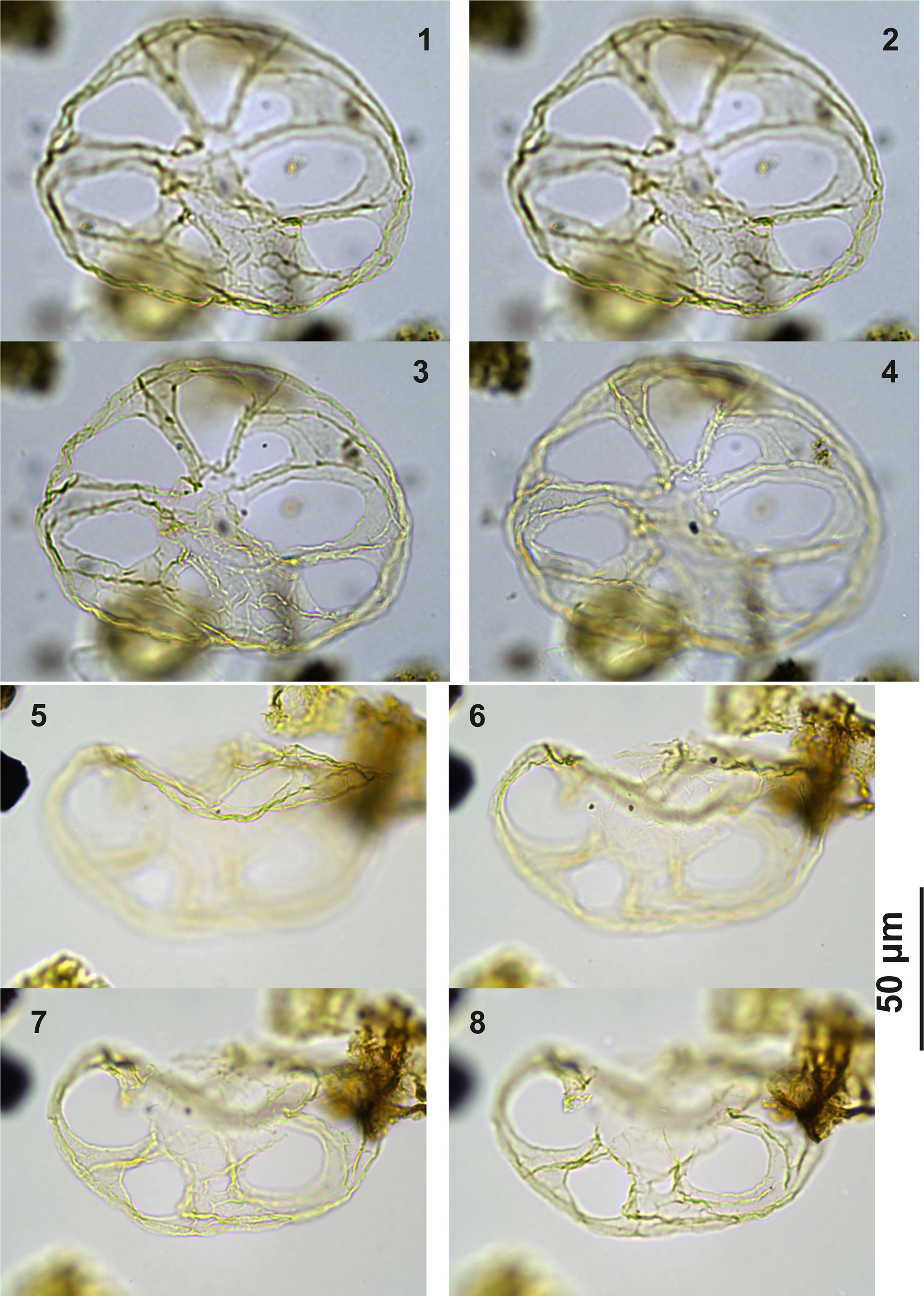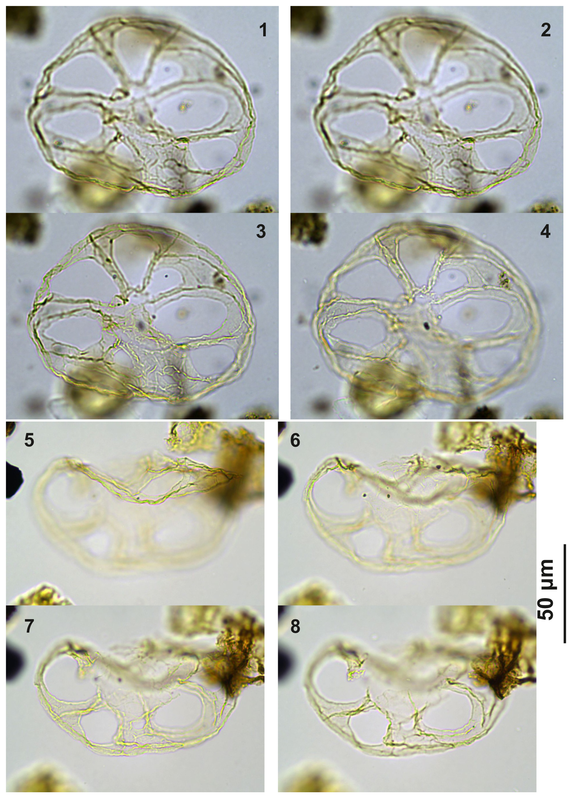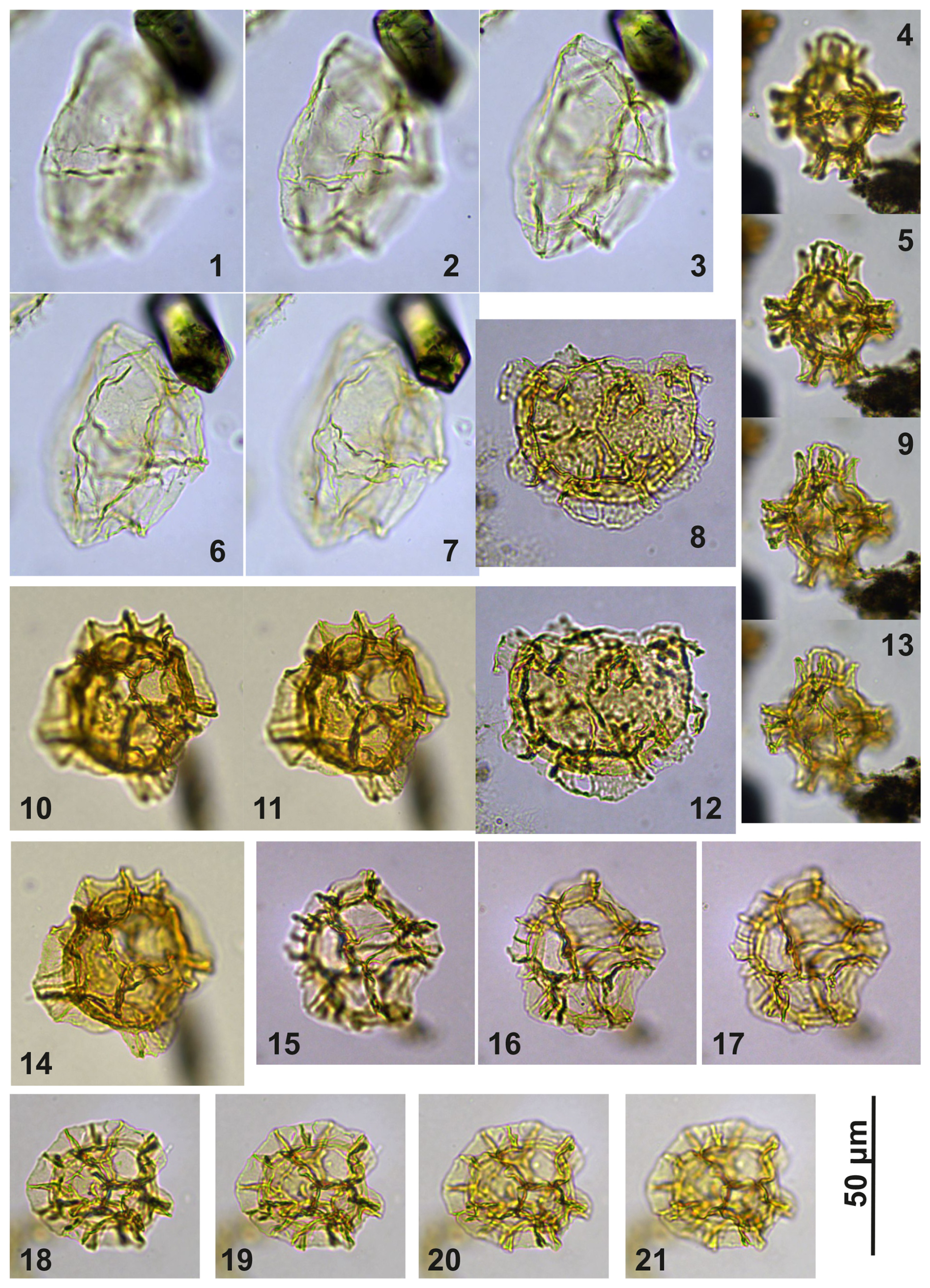 Jan du Chêne, R. and Châteauneuf, J.-J.: Nouvelles espèces de Wetzeliella et Deflandrea (Pyrrhophyta, Dinophyceae) de l'Eocène des Alpes occidentales, Revue de Micropaléontologie, 18, 28–37, 1975.