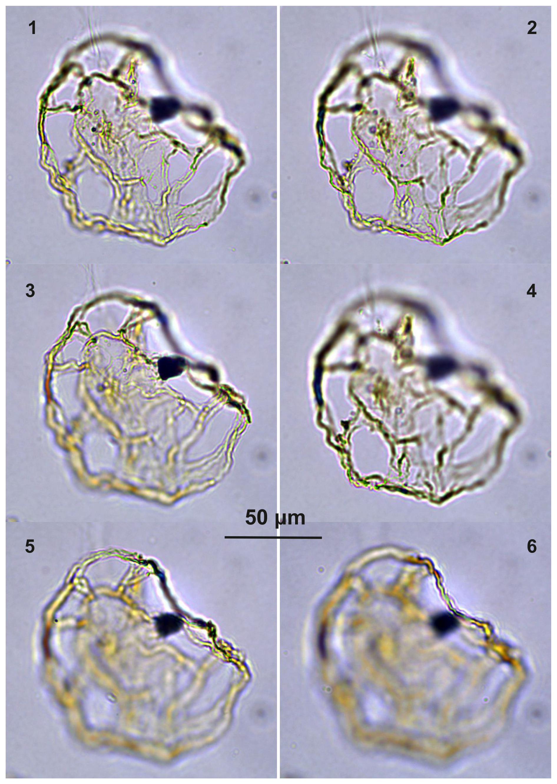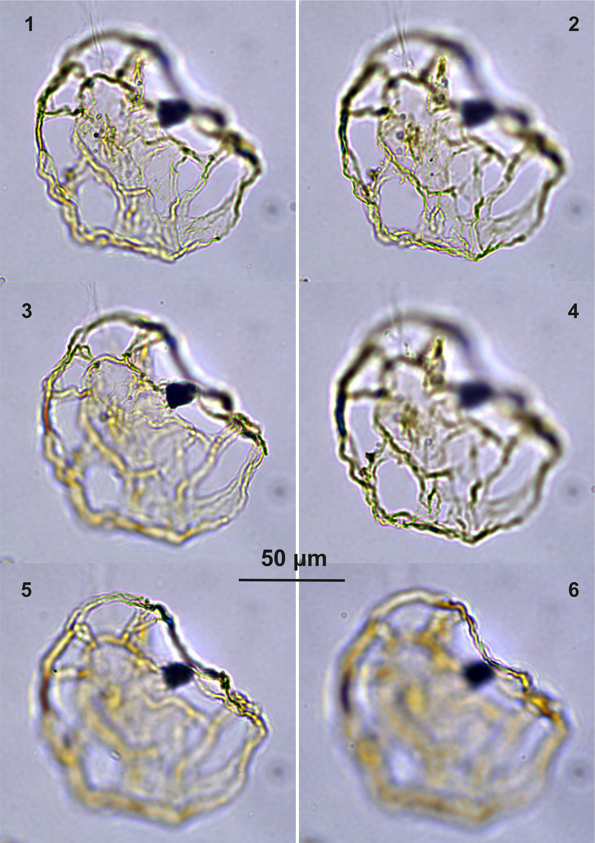 Paratype. Plate C10 (figs. 1–5); sample A3918, slide 1, EF: F34.