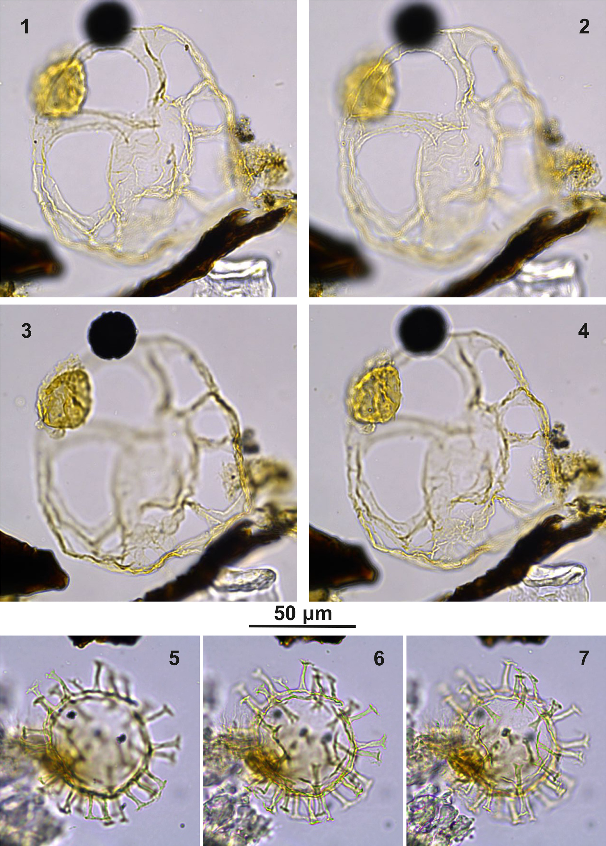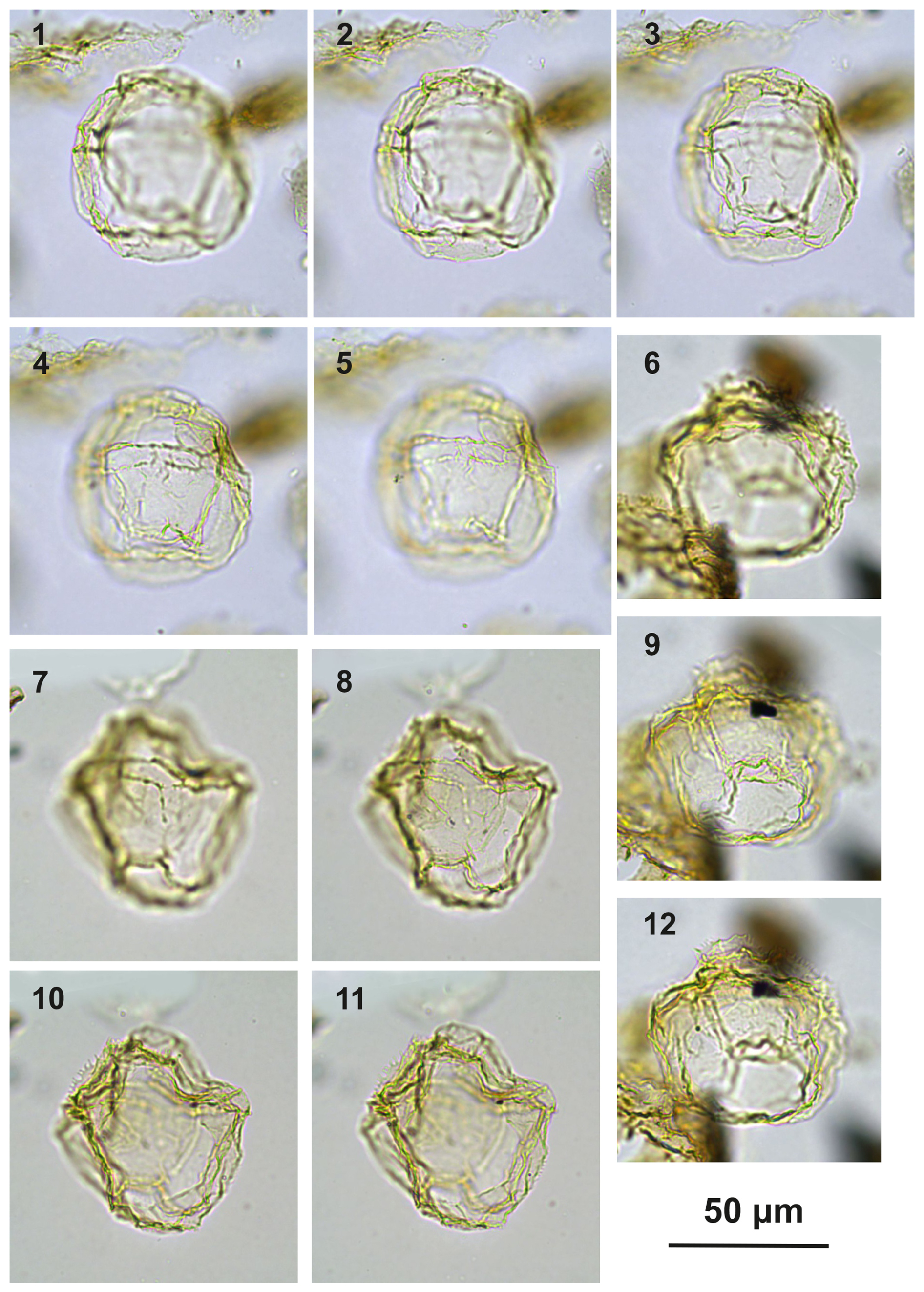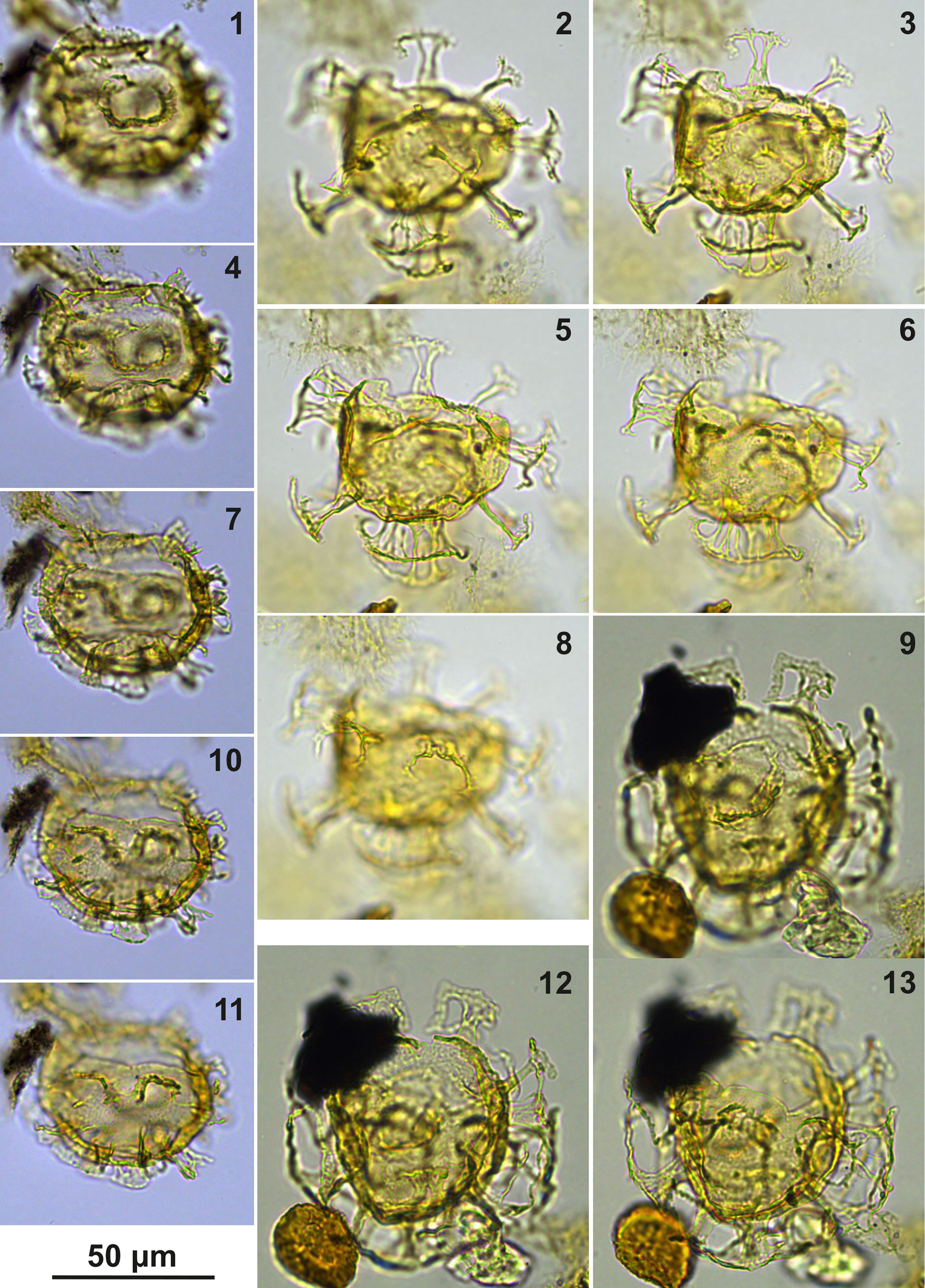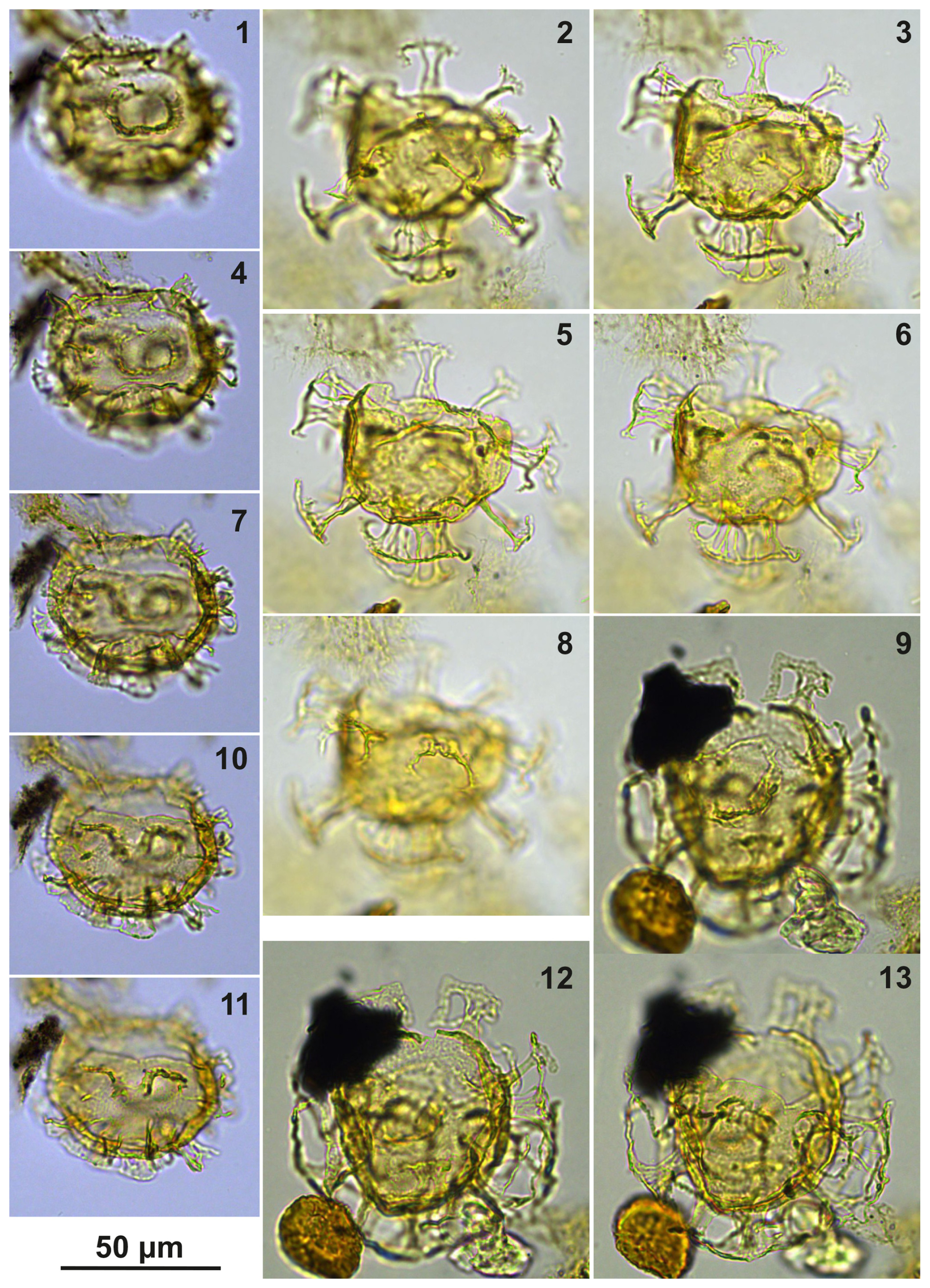 Dimensions. Holotype. Inner body: 51 × 49 µm; overall size: 72 × 73 µm. Mean values between 45 × 58 µm and 55 × 78 µm (n= 10).