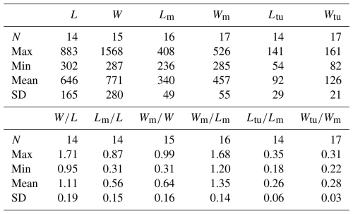 Abbreviations: L – length of valve, W – width of valve, Lm – length of metamorphic shell, Wm – width of metamorphic shell, Ltu – length of the tubercle to the posterior margin, Wtu – width between two tubercles, N – number of specimens, Max – maximum value, Min – minimum value, Mean – average value, SD – standard deviation. Measurement data: Table S2.